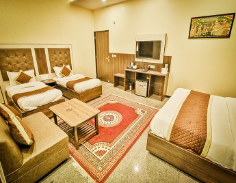 The suites of 400 sq. ft. have interiors done in shades of golden, chocolate brown, cream and yellow sapphire. Geometric adaptations transform traditional paintings into a new form of visual art that enlivens the space. Each suite has an drawing room area with facing natural scenery of Jal Mahal and mountains. .